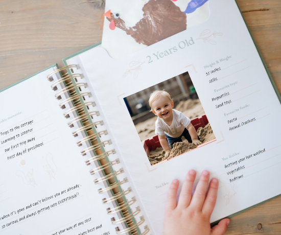 Beautiful spiral-bound hard cover books containing pockets for storing and capturing special mementos. You'll love our thoughtful designs and custom illustrations throughout the book that change as your child grows. We've thought about the moments that you'll want to capture, without making it overwhelming.
