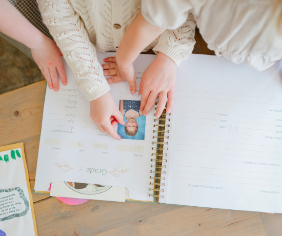 Our books are thoughtfully designed to preserve and cherish the meaningful childhood moments. Whether it's a class photo, a sentimental piece of art, or a report card for the School Book — or ultrasound images and a 1st card for the Baby Book — there's space to safely store the keepsakes that matter most.